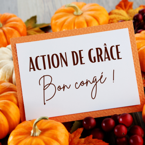 À l’occasion du congé de l'Action de Grâce, le lundi 13 octobre 2025, certains services de la Municipalité seront fermés alors que d'autres demeureront accessibles.