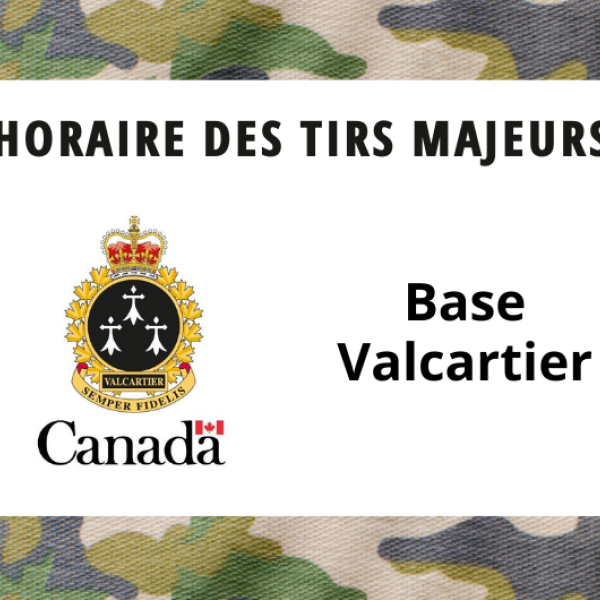 • Actualités • Horaire des tirs de la Base Valcartier - Février 2026