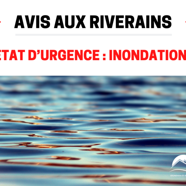En raison des fortes pluies, qui ont fait déborder de leurs lits plusieurs cours d’eau provocant déjà de nombreuses inondations dans certains secteurs, la municipalité des cantons unis de Stoneham-et-Tewkesbury a déclaré l’état d’urgence.