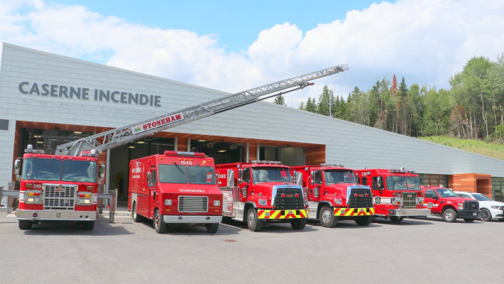 Située à côté du garage municipal et construite en 2017, cette réalisation représente un investissement de près de 4 M $. Ce projet a reçu une aide financière du ministère des Affaires municipales et de l’Habitation (MAMH) du volet RECIM du Programme d’infrastructure Québec-Municipalités (PIQM).  Ce bâtiment de cinq portes, en plus d’accueillir les véhicules incendies, comprend des ateliers de travail, une mezzanine avec une aire d’entreposage et de pratiques. La caserne est raccordée au puits d’alimentation d’eau potable du garage municipal et au réseau d’égout municipal.