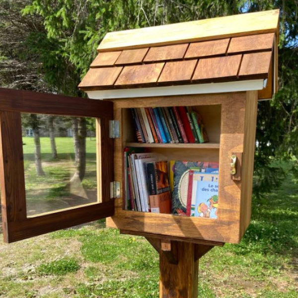 Cette belle boîte à livres nous a été offerte généreusement par l’entreprise Menuiserie C.J.V. inc. et madame Caroline Pruneau, qui a voulu s’impliquer dans sa communauté.